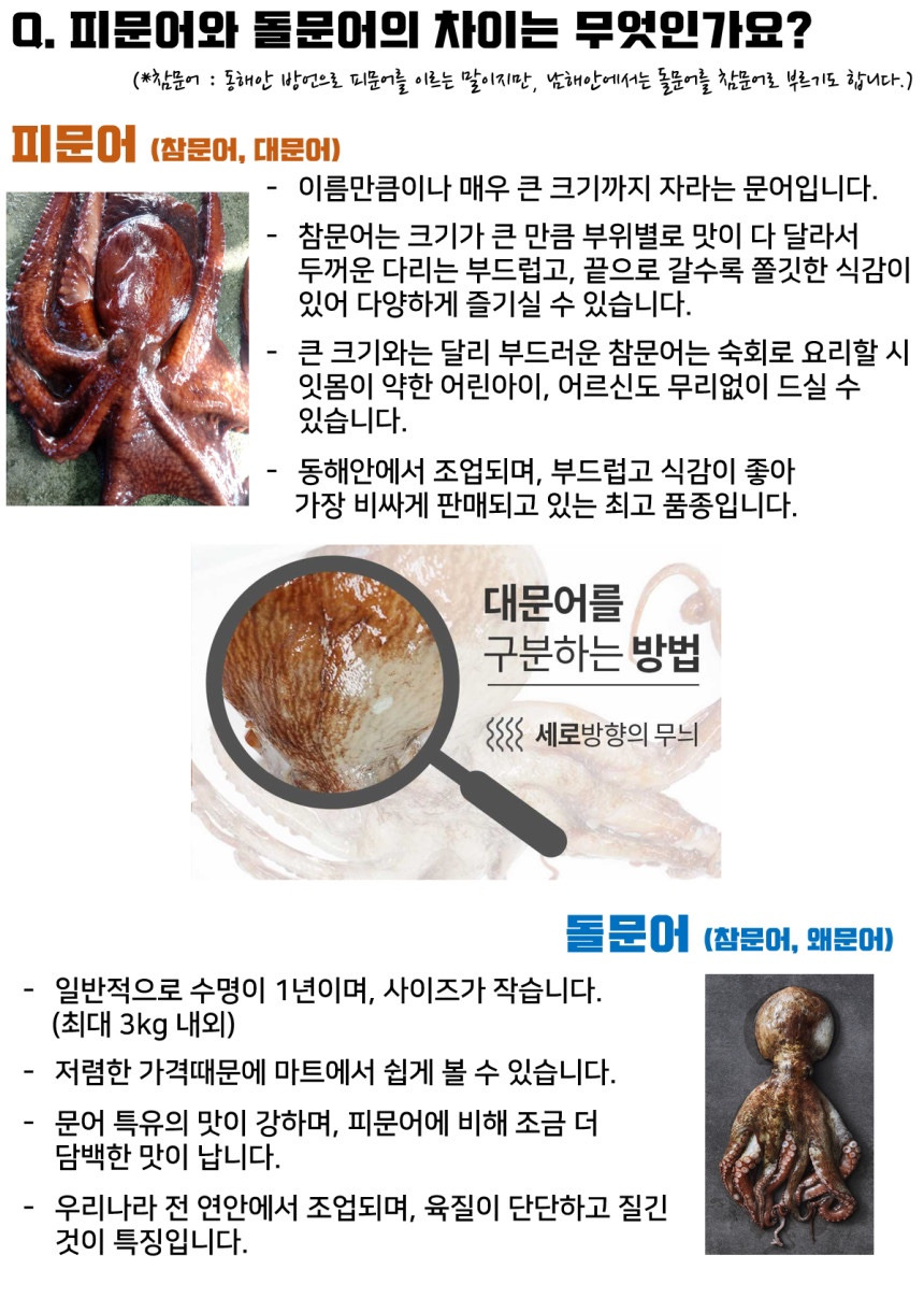 피문어와 돌문어의 차이도 딱 정리되어 있구요