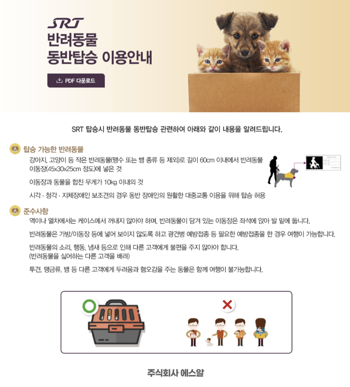 | SRT에 반려동물(강아지, 고양이) 탑승 가능할까? ㅣ (feat. 동반탑승규정, 주의사항) (10) | 2025.03.26 |
