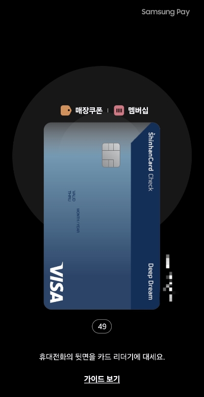 한국에서처럼 삼성페이를 결제 상태로 한 후
