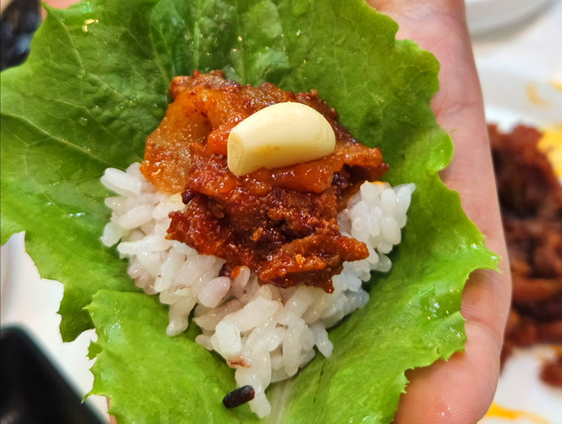 사장님께 참기름 좀 더 뿌려달라고 해서 먹으면