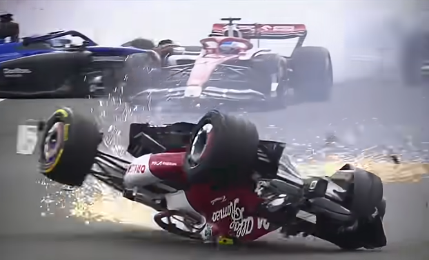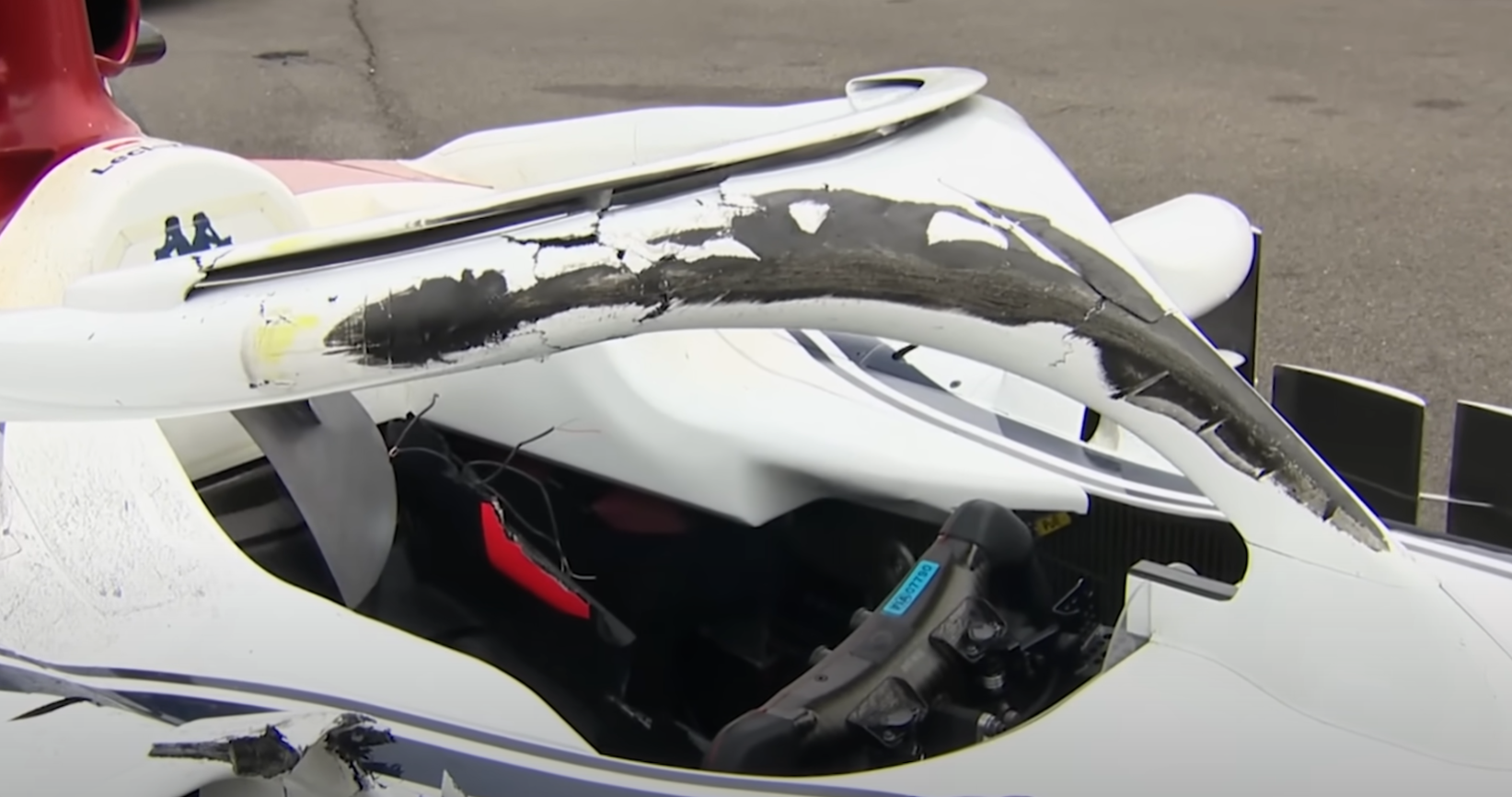 그런데 3년 전 영국 그랑프리에서는 스테이크 F1팀 킥 자우버 소속 저우관위 선수가 250km/h 이상으로 뒤집힌 채 300m를 미끄러졌는데 당시 이 롤 스트럭처가 부러진 사례가 있었습니다. 아주 다행히도 헤일로가 머리를 지탱해 상처 하나 없이 걸어나와 생존한 사례도 있었습니다.