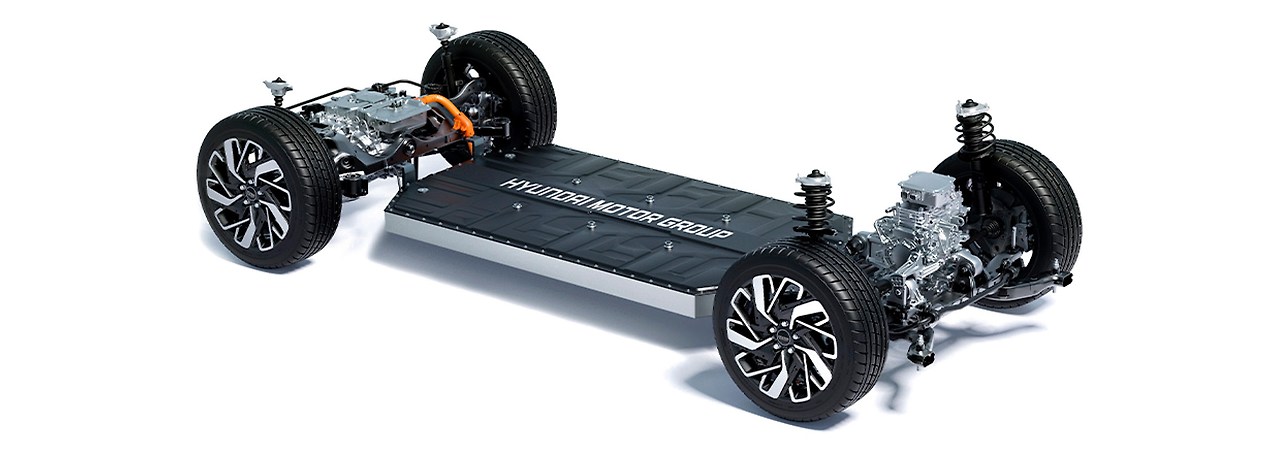 E-GMP는 배터리를 차량 하부에 낮게 깔아 '스케이트보드' 형태의 구조를 이룹니다.