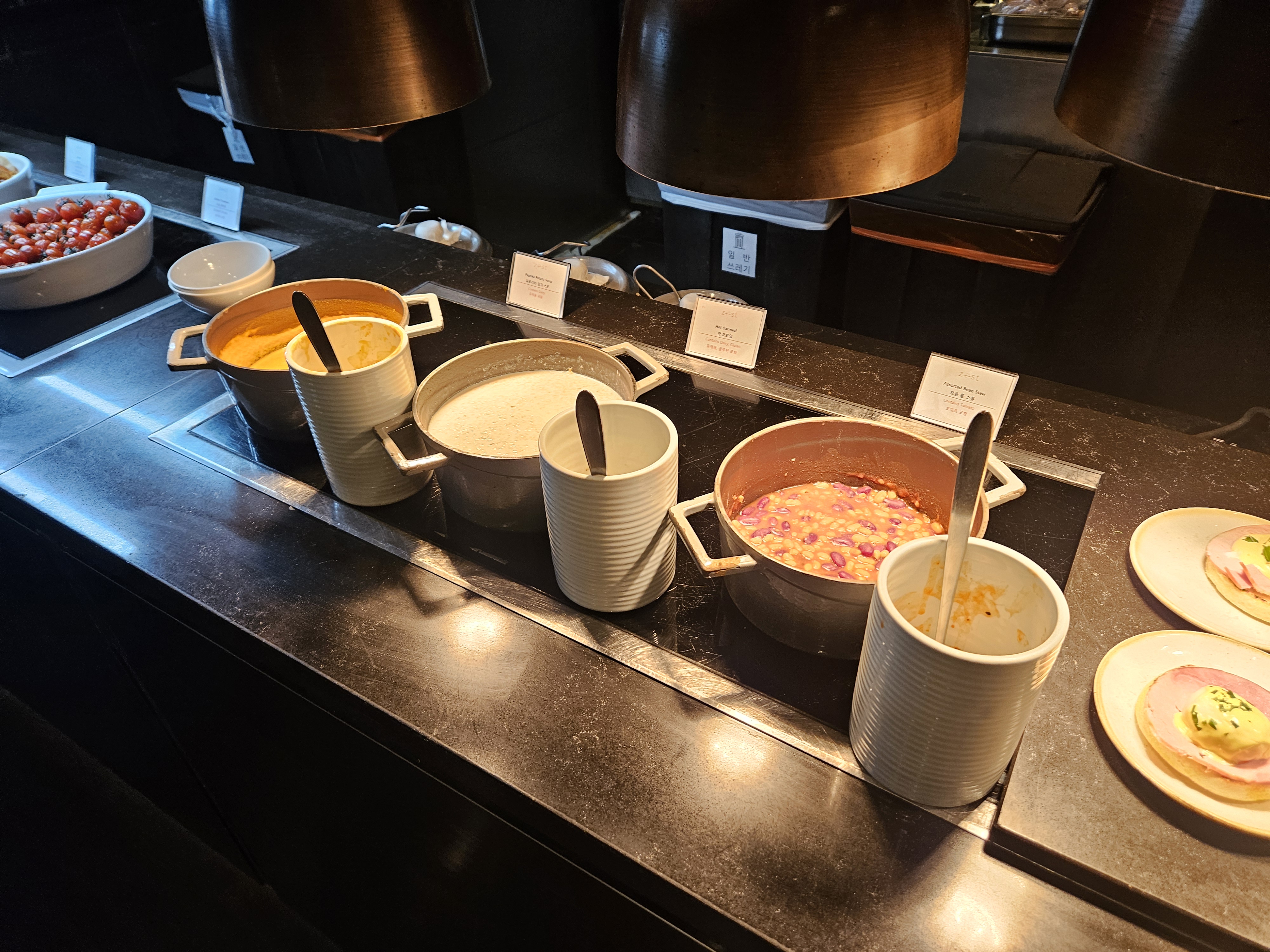 서양의 조식뷔페 느낌이 물씬 나는 음식들이 있습니다.