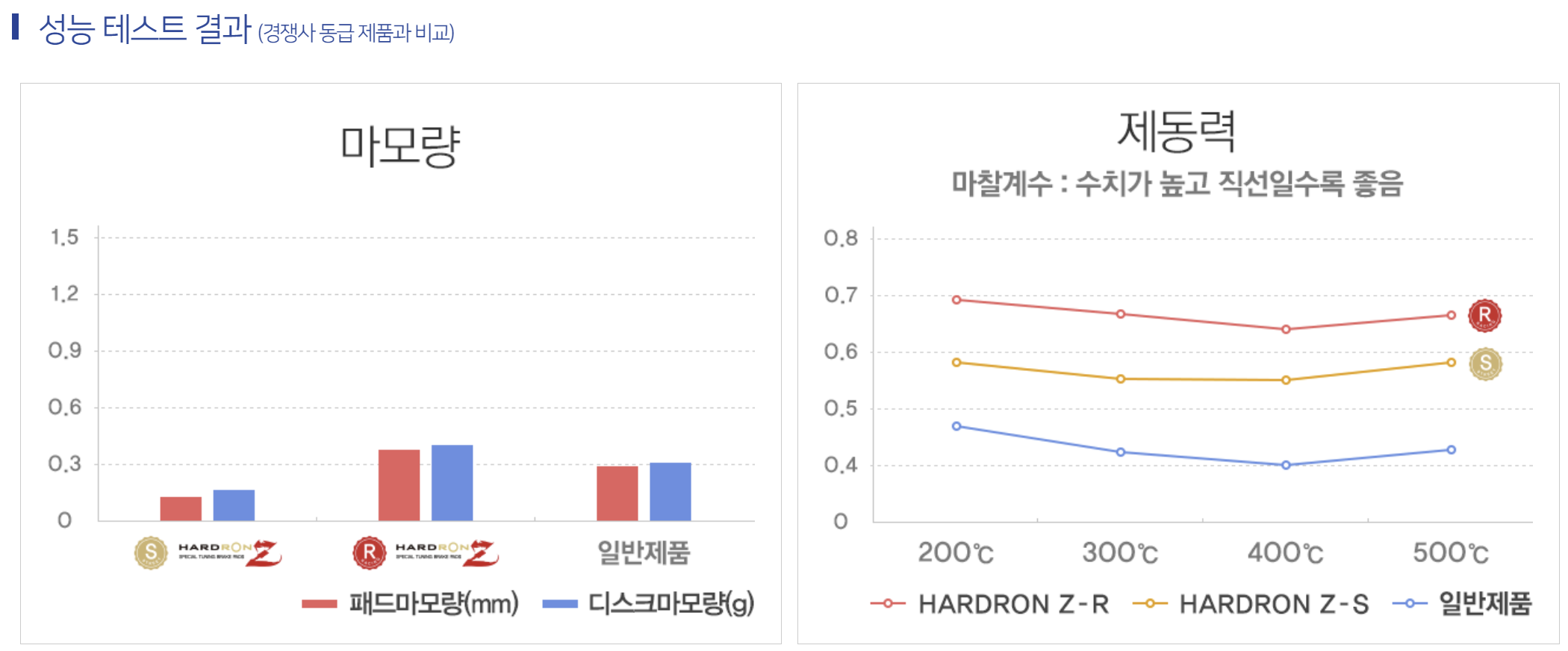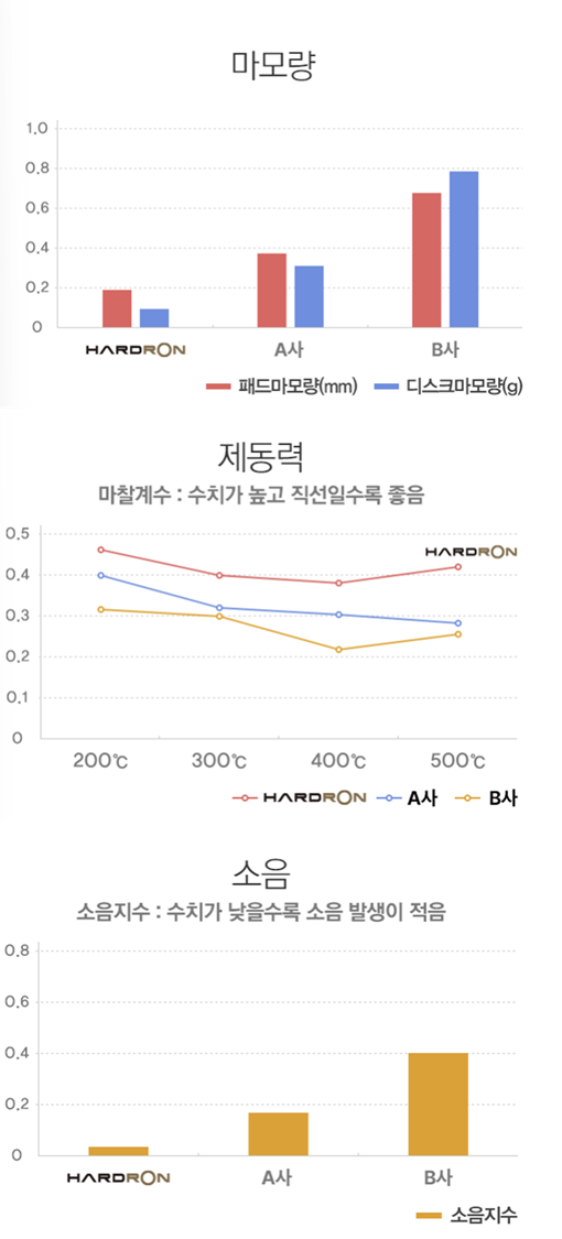 마모량,제동력,소음 등에서 좋은 성능을 발휘하고 있죠.