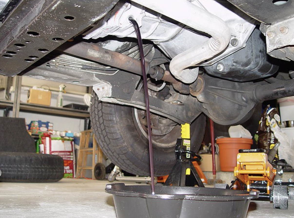 차량 밑에서 오일을 배출하는 방법입니다.