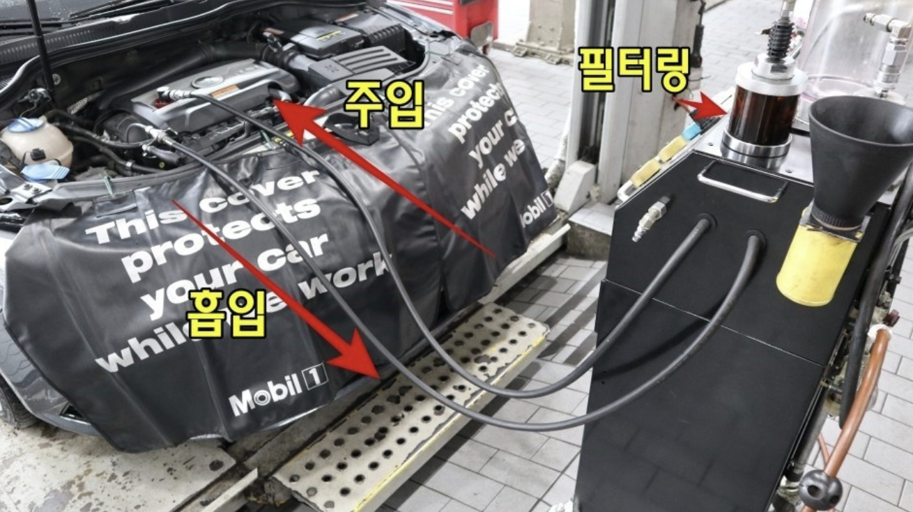 엔진을 깨끗하게 세척하면서 교환해주는것이