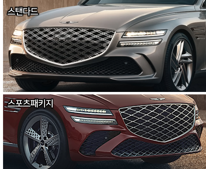 스포츠패키지 트림은 크롬그릴 안쪽에 블랙그릴이 있어