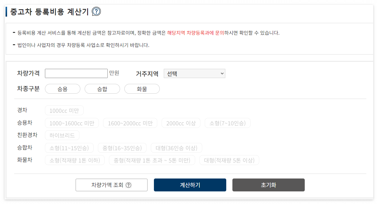 거주지역, 차종구분, 배기량, 형식번호를 조회하신후에