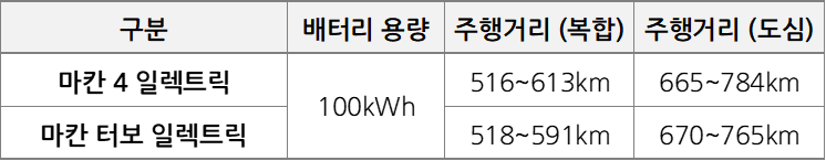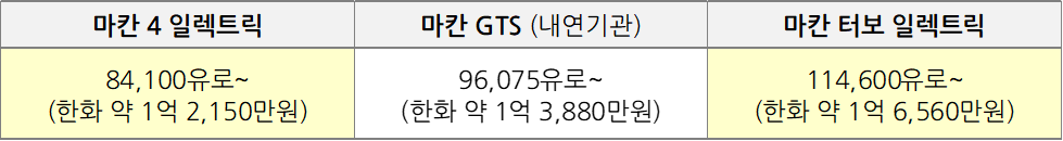 마칸(후륜구동) 일렉트릭 모델 9,910만원,