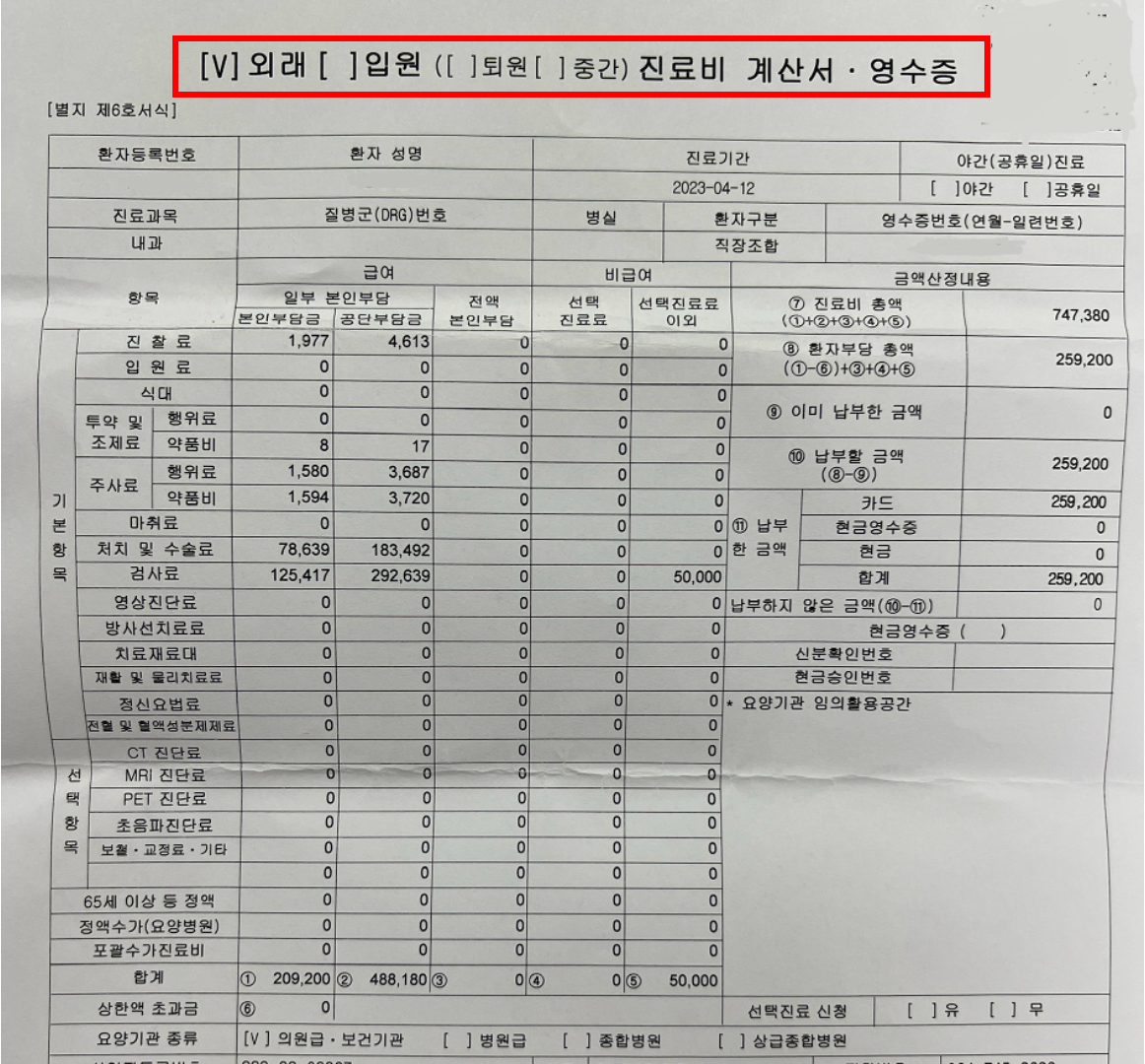 #03. 진료비세부내역서 : EDI코드 확인용, 실손 청구시 필수서류
