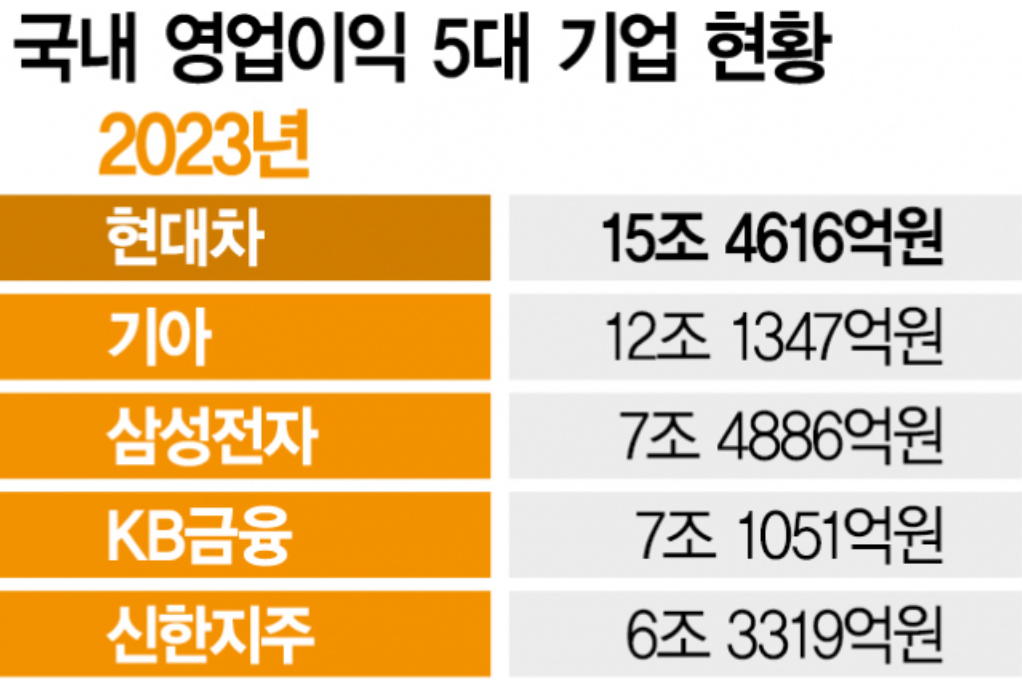 현대차,기아가 국내상장사 중 영업이익 1,2위를 기록하며