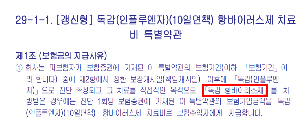 독감 항바이러스제 치료비 담보를 지급받기 위해서는
