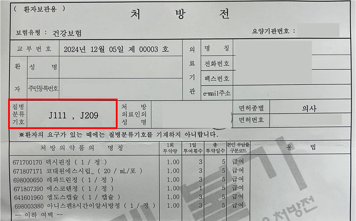 #03. 처방전+진료비세부내역서 : 독감 항바이러스제 치료여부 판단용
