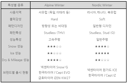"윈터타이어의 종류"