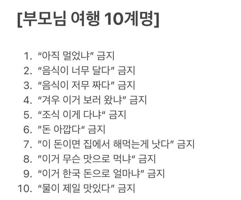 먼저, 부모님 여행 10계명 저장 필수 :D