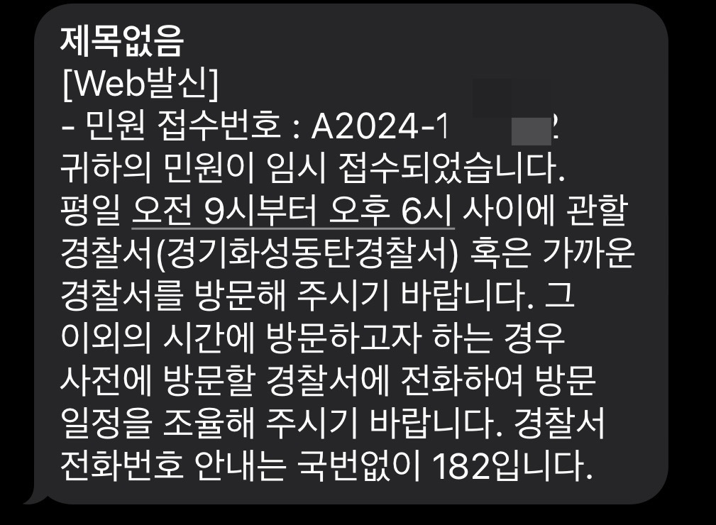 신고를 완료하면 임시접수 문자가 온다