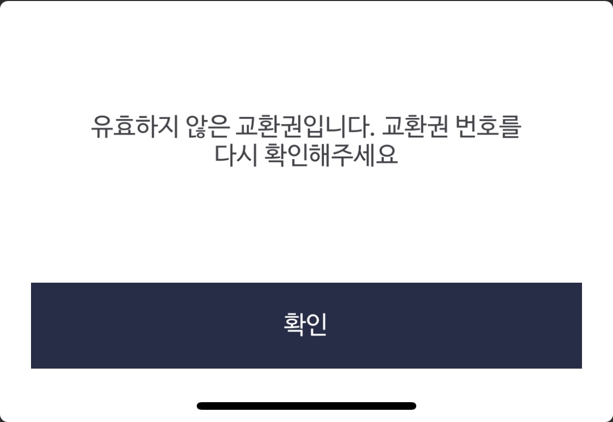 받은 모바일교환권은 당연히 등록되지 않았고..