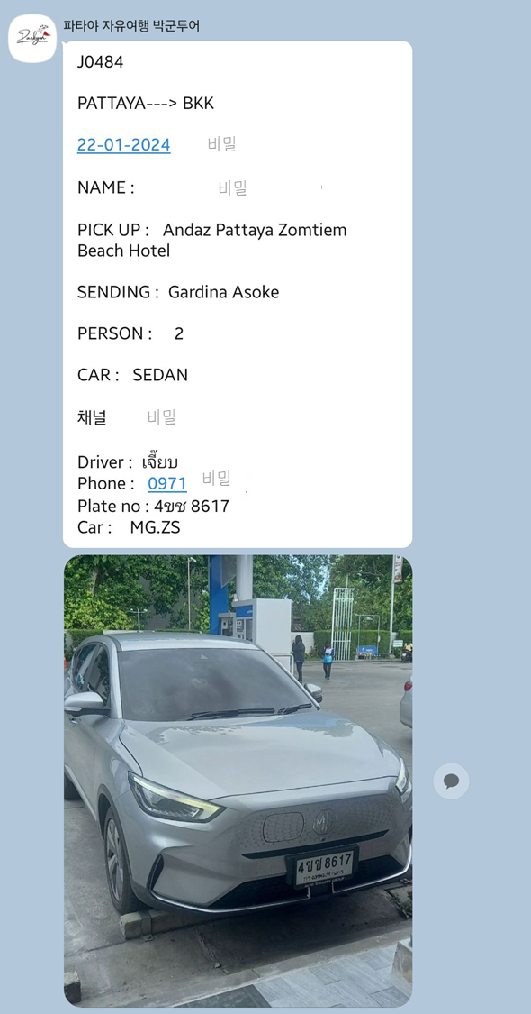 태국 파타야에서 방콕으로 가는 택시를 예약하기 위해