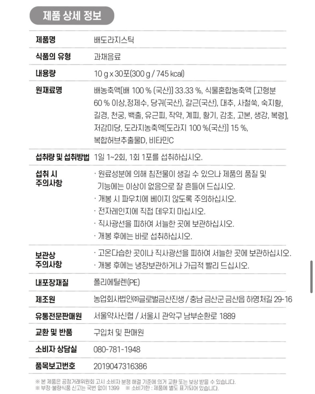 서울약사신협 배도라지스틱은 모두 국내산 재료